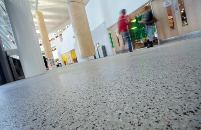 Polished or stained concrete delivers a modern, industrial aesthetic with excellent durability for commercial and residential environments.